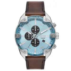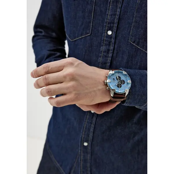 A Diesel DZ4606 Spiked Chronograph férfi karóra az elegancia és a modern, karakteres megjelenés találkozása. A barna bőr szíj kényelmes viseletet ad, a rozsdamentes acél tok pedig masszív, megbízható érzetet nyújt a mindennapokban. A kék számlap látványos kontrasztot teremt, így az óra öltönyhöz és hétköznapi szettekhez is könnyen illeszthető.