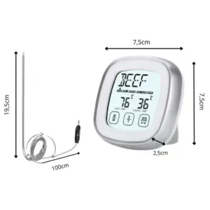 Digitális konyhai húshőmérő szondával – pontos segítség a tökéletesen átsült steakhez, sültekhez és mindennapi főzéshez. A rozsdamentes acél szonda gyors és megbízható mérést tesz lehetővé, az érintőkijelzős LCD pedig könnyen kezelhető.