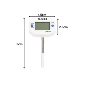 Digitális LCD konyhai hőmérő rozsdamentes acél hússzúróval, amellyel gyorsan és pontosan ellenőrizheted az ételek belső hőmérsékletét sütés, főzés, grillezés vagy pirítás közben. Ideális steakhez, sültekhez, csirkéhez, grillételekhez, de akár süteményeknél is, amikor fontos a megfelelő hőfok.