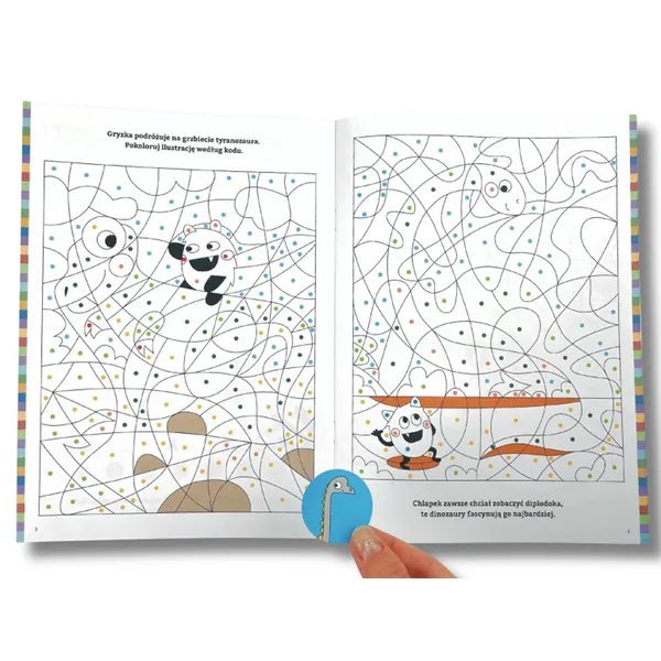Színezz, fedezz fel és szórakozz a kedves Bazgraki lényekkel a dinoszauruszok őskori világában! Ez az egyedi, kód szerinti színező kreatív kalandra hívja a gyerekeket, miközben játékosan fejleszti a megfigyelőképességet, a fókuszt és a logikus gondolkodást.
