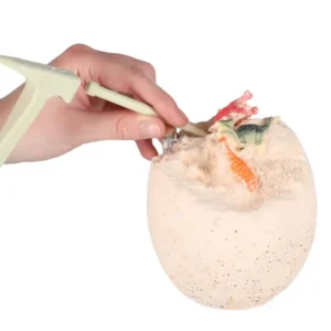 A gipsztojást lépésről lépésre feltárva a gyerekek 12 dinoszaurusz figurát fedezhetnek fel, közben fejlődik a kézügyességük és a kitartásuk. Ideális STEM ajándék, amely szórakoztatva ismerteti meg a régészet alapjaival.