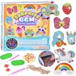 24 rekeszes DIY gyémántszemes készlet, amellyel csillogó kulcstartókat készíthettek táskára, kulcsra vagy szobadísznek. A kövek felhelyezése fejleszti a kézügyességet és a türelmet, a sokféle minta pedig minden nap új sikerélményt ad a gyerekeknek.