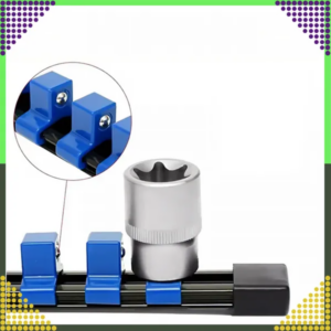 Rendezett műhely, gyors munkavégzés – a 1/2″-os dugókulcsfejekhez tervezett fém sín 12 darab erős műanyag klipsszel tartja helyén a fejeket. Így elkerülhető az elveszett szerszám és csökken a keresési idő.