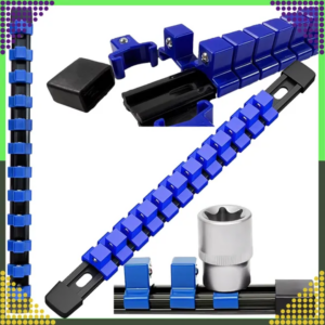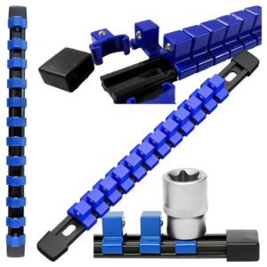 Dugókulcsfej rendező fémsín 12 klipsszel, 1/2″ befogás, hordozható