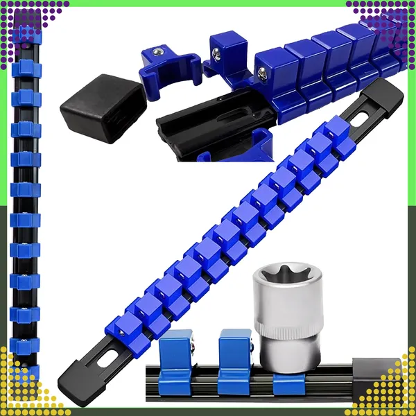 Rögzítse 1/2″-os dugókulcsfejeit masszív fémsínen, amely 12 erős klipsszel gyors hozzáférést és rendezett munkaterületet biztosít. Helytakarékos kialakításának köszönhetően fali panelre, szerszámkocsira vagy szerviztáskába is könnyen beilleszthető.