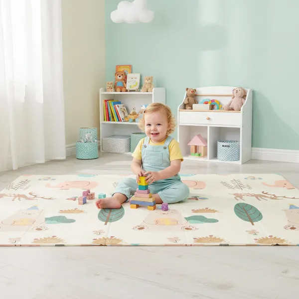 Puha XPE habból készült játszószőnyegünk csúszásmentes, vízálló felülete biztonságot és kényelmet nyújt minden mozdulatnál. A 200×180 cm-es, összecsukható és hordtáskás kialakításnak köszönhetően bárhol pillanatok alatt kialakíthatod a meleg, fejlesztő játékteret.