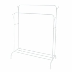 Két szinten rendezheti a rövid és hosszú ruhákat, az alsó polcon pedig kéznél tarthatja a cipőket vagy kiegészítőket. Stabil, fémvázas kialakítása mindennap megbízható, fehér színe pedig könnyen illik a hálóba, előszobába vagy irodába.