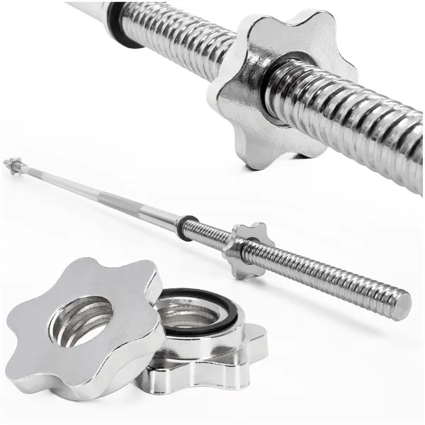 Masszív, krómozott acél egyenes súlyzórúd 25 mm-es tárcsákhoz, csúszásmentes fogással a stabilabb edzésért. A gumitömítéses csavaros zárak gyorsan rögzítik a súlyokat, csökkentik a lötyögést és biztonságosabbá teszik a sorozatokat otthon és teremben is.