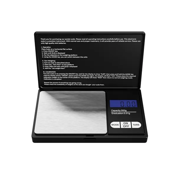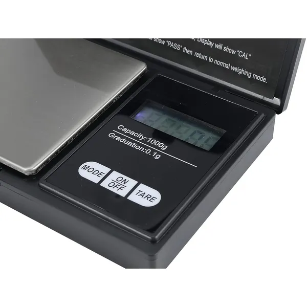 Ékszerész zsebmérleg 500 g kapacitás, 0,1 g pontosság, LCD, fekete