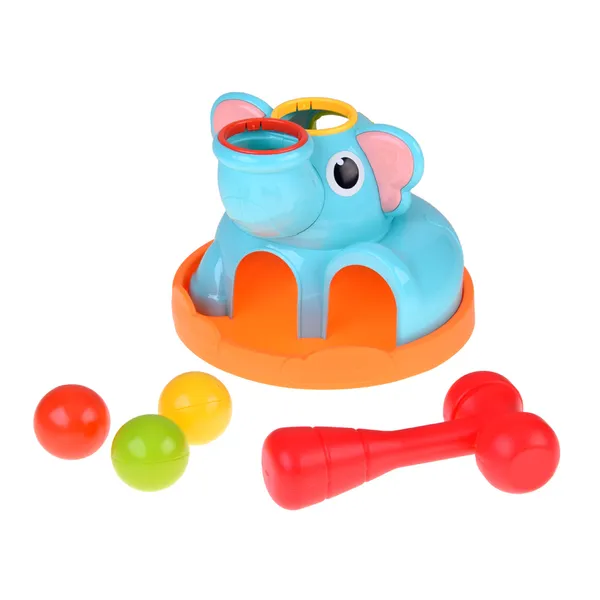 • Készlet: elefánt pálya, 3 db labda, 1 db kalapács.