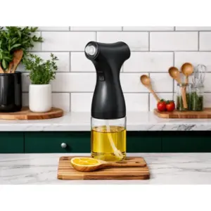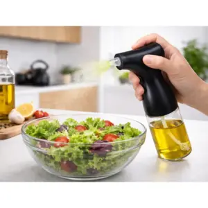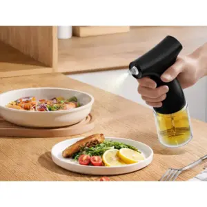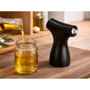 Az elektromos szórófejjel egyenletesen és pontosan adagolhatod az olajat vagy az ecetet, így kevesebb zsiradék fogy és tisztább marad a pult. Az üveg tartály nem veszi át a szagokat, a fúvóka állítható, az USB-töltés pedig kényelmes, elemek nélküli használatot ad.