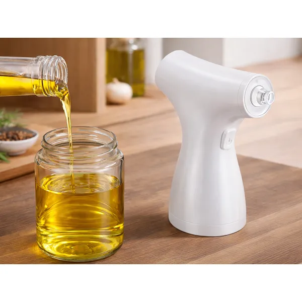Pontos adagolás, kevesebb olaj, tisztább konyha. Ez a modern, elektromos olaj- és ecetszóró egyenletes, vékony rétegben fújja az olajat vagy ecetet az ételekre, így könnyebb kontrollálni a mennyiséget, és elkerülhető a túlöntés.