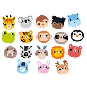 Illesszétek össze a darabokat, majd nevezzétek meg az állatokat, utánozzátok hangjukat vagy arckifejezésüket, meséljetek történeteket! Így a játék kreatív nyelvi és érzelmi fejlődést is támogat.