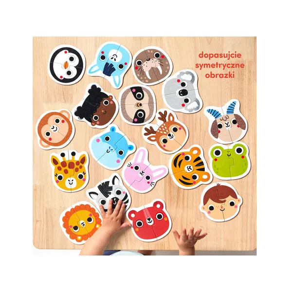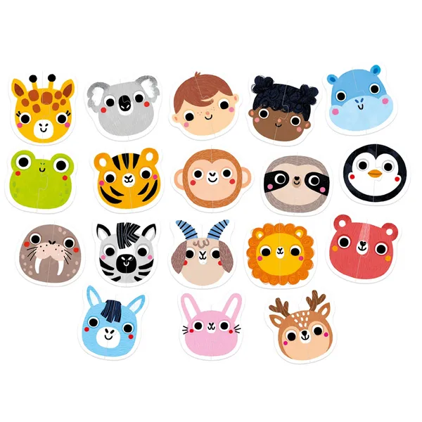 Első kirakók: 18×2 db állatos arc puzzle, vastag karton, 15 hó+