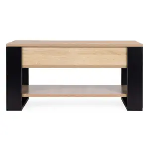 Az állítható magasságú asztallap könnyen a használati helyzethez igazítható, így a bútor a mindennapokban sokoldalúan használható. A lap alatt rejtett tárolórekesz segít rendben tartani a kisebb tárgyakat, az alsó polc pedig extra helyet biztosít könyveknek, magazinoknak vagy dekorációknak.