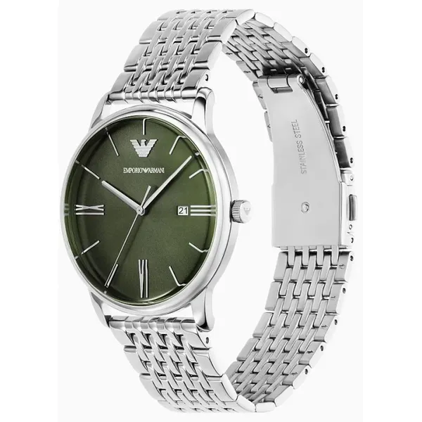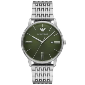 A kvarc hajtású, WR50 vízálló Emporio Armani AR11644 minden helyzetben stílusos társ, miközben a zöld számlap és az ezüst acélszíj eleganciát sugároz. A díszdobozban érkező modell tökéletes választás saját használatra vagy igényes ajándéknak egyaránt.