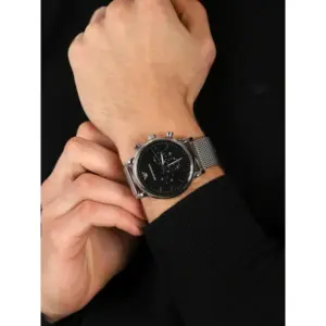 Elegáns, mégis sokoldalú választás a mindennapokra és alkalmi megjelenéshez, fekete számlappal és ezüstszínű rozsdamentes acél kivitelben. A kronográf, a dátumkijelzés és a kényelmes viselet praktikus előnyt ad a stílusos megjelenés mellé.