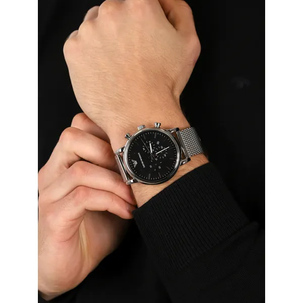 Az Emporio Armani AR1808 férfi karóra elegáns és sokoldalú választás, amely remekül illik üzleti, alkalmi és ünnepi öltözékhez is. Az ezüstszínű rozsdamentes acél tok és szíj modern, időtálló megjelenést biztosít, míg a fekete számlap karakteres kontrasztot ad az órának. A számlapot ásványi üveg védi, így a mindennapi használat során is megbízható társ.