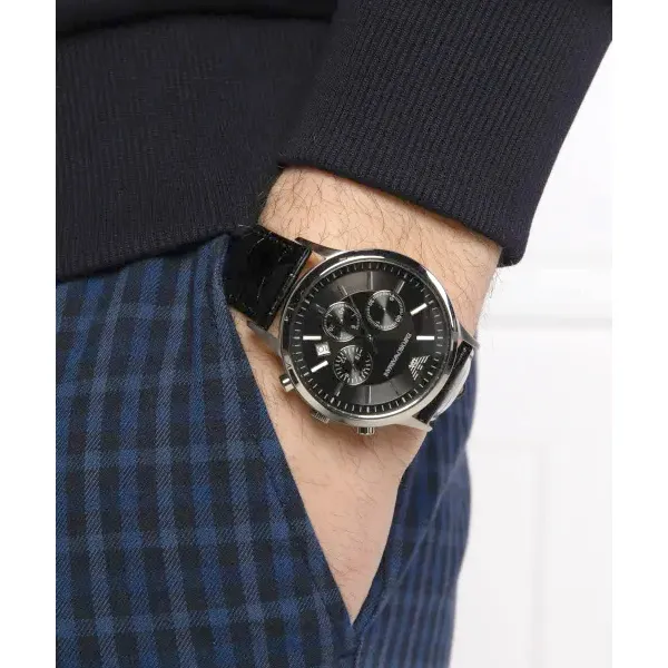 Az Emporio Armani AR2447 Renato egy klasszikus férfi karóra, amely elegáns megjelenésével és praktikus funkcióival szinte bármilyen alkalomra ideális választás. A rozsdamentes acél tokhoz kiváló minőségű, természetes fekete bőrszíj társul, míg a fekete számlapot ásványi üveg védi a mindennapi használat során.