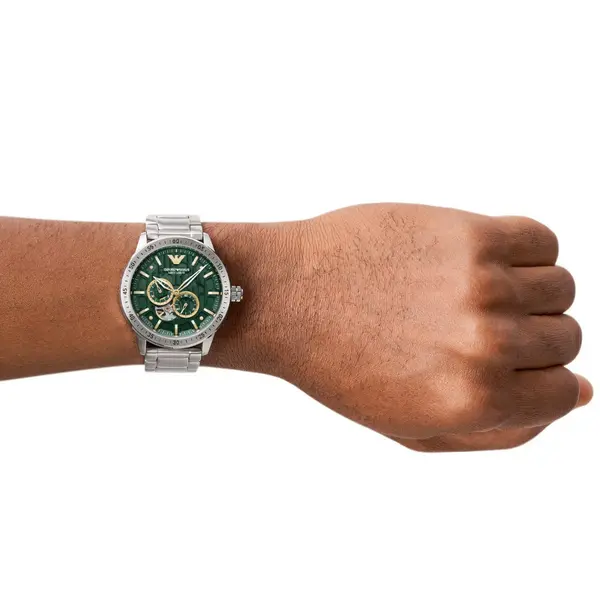 Emporio Armani AR60052 férfi automata karóra, csontvázas zöld számlap, acél