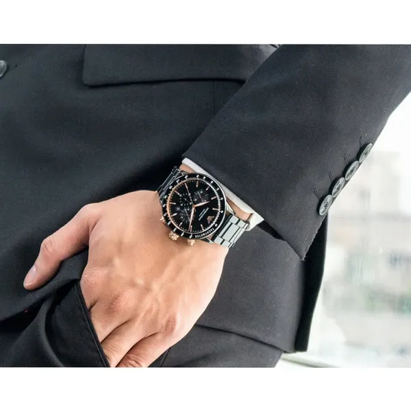 A könnyű, karcálló fekete kerámia tok és szíj elegáns megjelenést, a kronográf és dátum funkciók pedig sportos praktikusságot kínálnak, így egyetlen órában élvezheted a luxust és a mindennapi használhatóságot, akár üzleti találkozón, akár hétvégi programon viselnéd, ráadásul a WR30 cseppállóság gondtalan hordást tesz lehetővé.