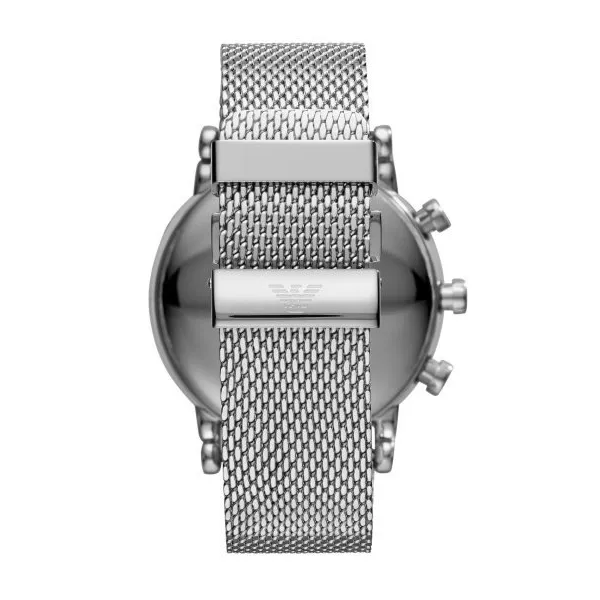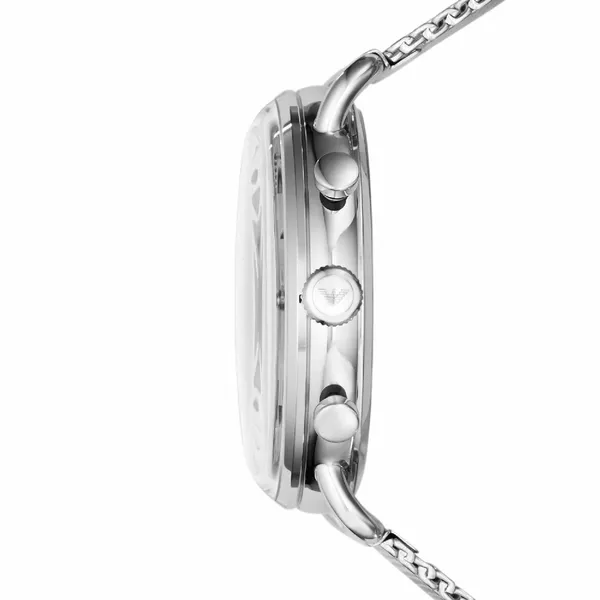 Az Emporio Armani AR11104 Aviator férfi karóra elegáns és sokoldalú választás, amely jól illik üzleti öltözékhez és hétköznapi viselethez egyaránt. Az ezüstszínű, nemesacél tok és a kényelmes mesh szíj modern, kifinomult megjelenést ad az órának. A fekete számlapot ásványi üveg védi, amely alatt dátumkijelző, kronográf segédszámlapok, 24 órás kijelzés és visszafogott márkalogó kapott helyet.