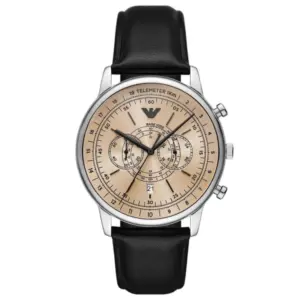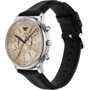 Emporio Armani férfi karóra kronográffal, bőrszíjjal, bézs számlappal