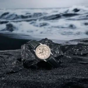 Elegáns, fekete bőrszíjas férfi karóra bézs számlappal, amely könnyen kombinálható üzleti és hétköznapi öltözettel is. A dátumkijelzés, a kronográf és az 50 méteres vízállóság praktikus választássá teszi a mindennapokra.