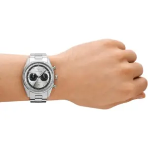 Elegáns és hétköznapi viselethez is ideális, tartós nemesacél kivitelű karóra praktikus dátumkijelzéssel és kronográffal. Az ásványi üveg és a WR50 vízállóság megbízható társává teszi a mindennapokban.