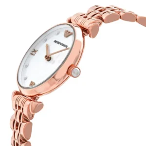 Emporio Armani Gianni T-Bar női kvarc karóra, rózsaarany acél, fehér gyöngyház számlap