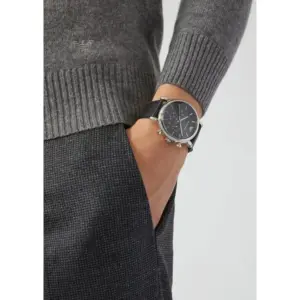 Az Emporio Armani Luigi AR1828 egy stílusos férfi karóra, amely elegáns öltözethez és hétköznapi viselethez is kiváló. A tartós, nemesacél tok ezüst színben készült, a fekete számlapot pedig karcállóbb érzetet adó ásványüveg védi. A fekete bőrszíj kényelmes, jól illeszkedik, az antiallergén bevonat pedig hozzájárul a komfortos viseléshez.