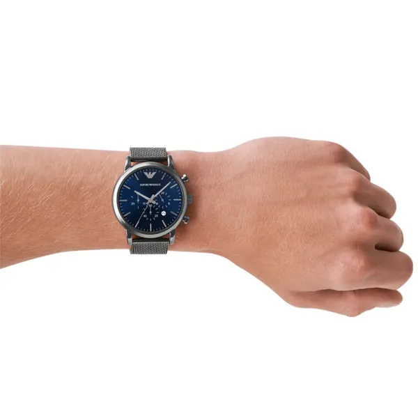 Az Emporio Armani AR1979 Luigi férfi karóra elegáns és hétköznapi viselethez egyaránt kiváló választás. A grafit színű rozsdamentes acél tok és milánói szemes acél szíj modern, letisztult megjelenést ad, míg a sötétkék számlap kifinomult kontrasztot teremt. A számlapot ásványi üveg védi, amely segít megőrizni az óra esztétikus megjelenését a mindennapi használat során.