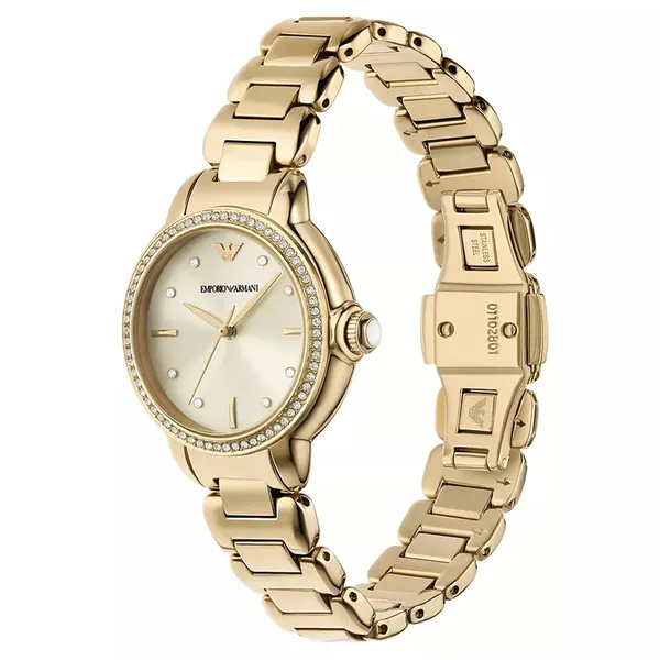 Emporio Armani Mia női arany karóra acél szíjjal, kristályokkal