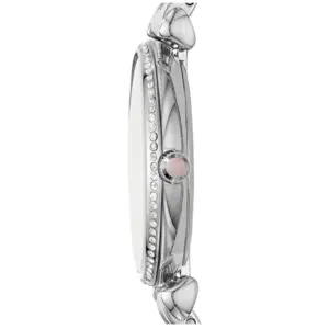 Elegáns, rozsdamentes acél kivitelével és rózsaszín gyöngyház számlapjával kifinomult megjelenést ad a mindennapokban és különleges alkalmakon is. A pontos kvarc szerkezet, a kényelmes viselet és a fröccsenés elleni védelem praktikus választássá teszi.
