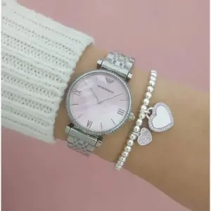Az Emporio Armani AR1779 női karóra elegáns és időtálló választás, amely könnyedén illik mindennapi viselethez és alkalmi megjelenéshez is. A tok és a szíj rozsdamentes acélból készült, így tartós, ellenálló és hosszú távon is megőrzi esztétikus megjelenését. A rózsaszín gyöngyház hatású számlapot karcálló ásványi üveg védi, a pontos működésről pedig kvarc szerkezet gondoskodik.