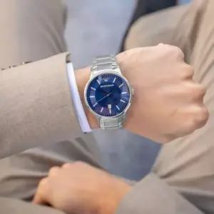 Elegáns, mégis jól kihasználható férfi karóra kvarc szerkezettel, kék számlappal és rozsdamentes acél kivitelben. A dátumkijelzés, a kényelmes acélcsat és a WR50 vízállóság praktikus választássá teszi mindennapi és alkalmi viselethez is.