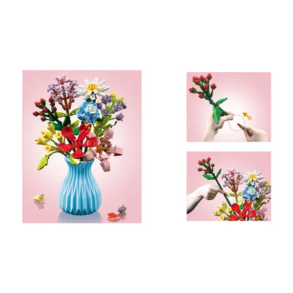 Építőelemes vadvirág csokor vázában, 8 féle, 699 db