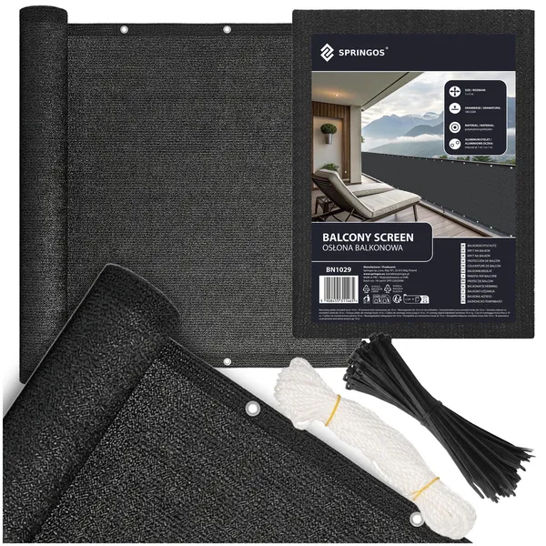 Erkély takaró háló 1×5 m, antracit, 95% árnyékolás, UV- és vízálló