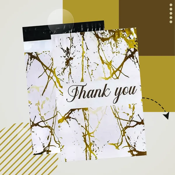 Erős futár fóliatasak 255×370 mm, arany márvány, Thank You, 50 db