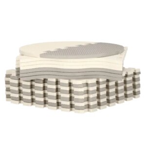 A vízálló, nem mérgező anyag könnyen tisztán tartható, a dombornyomott felület pedig segít csökkenteni a csúszkálást. A peremelemekkel esztétikus, rendezett „játszósarok” alakítható ki, a mellékelt hordtáska pedig megkönnyíti a tárolást és a szállítást.