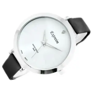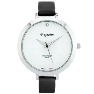 Extreim női karóra, fekete szíjas, fehér számlap, ezüst tok