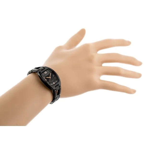 Elegáns, fekete női karóra japán Miyota szerkezettel és tartós ásványi üveggel, amely megbízható választás a mindennapokra. A rózsaarany részletek és a fém szíj kifinomult megjelenést adnak, miközben a WR30 védelem a hétköznapi használatot is támogatja.