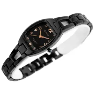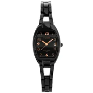 A karórát japán Miyota szerkezet működteti, amely pontos időmérést biztosít. A fekete számlapot rózsaarany színű jelölések emelik ki, a fekete fém szíj pedig modern, egységes összhatást teremt.