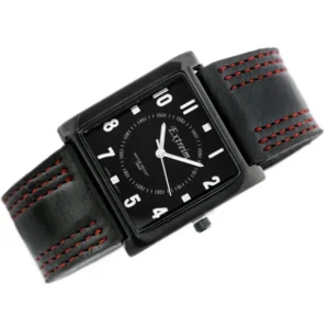 Letisztult, szögletes tok és fekete számlap sportosan-elegáns megjelenéssel, piros varrással díszített kényelmes textilszíjon. Japán Miyota кварc szerkezete pontos időmérést ad, az ásványi üveg és a WR30 vízállóság pedig magabiztos mindennapi használatot biztosít.