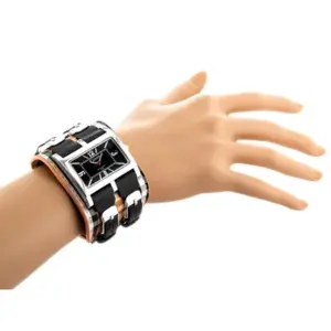 A megbízható Miyota kvarc szerkezet Japánban készült, így pontos időmérést és kényelmes, gondtalan használatot biztosít. A téglalap alakú tok, a fekete számlap és a fekete textilszíj narancssárga béléssel különleges, karakteres összhatást teremt.
