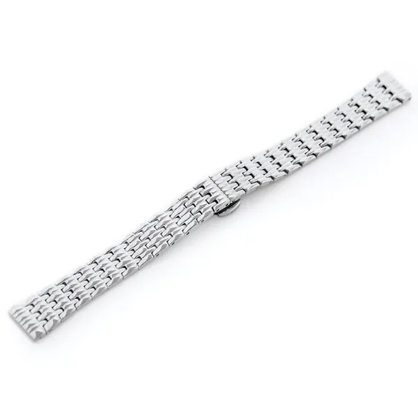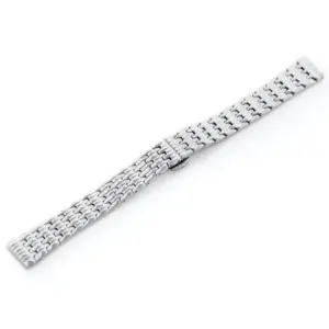Elegáns, ezüstszínű acél óraszíj pillangócsattal, amely minőségi karórákhoz készült. A fém kivitel tartós, megjelenése időtálló, így mindennapi viselethez és alkalmi használatra is jó választás.