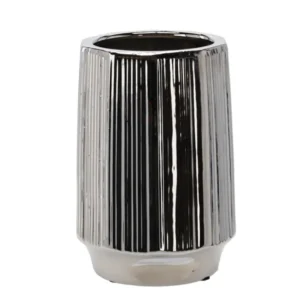 Egyedi megjelenésű, ezüst csíkokkal díszített kerámia kaspó, amely elegánsan kiemeli kedvenc szobanövényeit vagy teraszon nevelt növényeit.