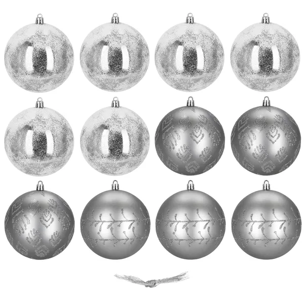 Ezüst műanyag karácsonyfadísz szett 12 db, 9,5 cm, törésálló