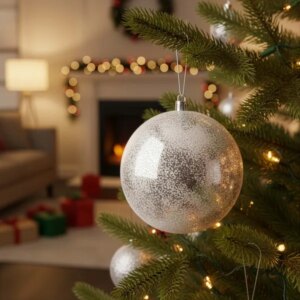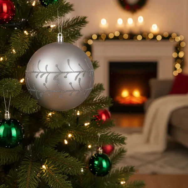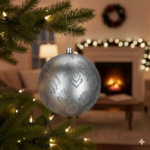 Az ezüst színű, többféle felületű díszekkel könnyedén egységes, elegáns megjelenést adhat a fának. A törésálló műanyag ideális választás gyerekszobába, irodába vagy háziállat mellé is, a mellékelt zsinórokkal pedig gyorsan felakasztható.