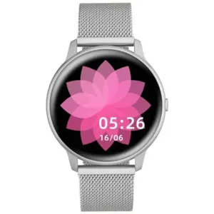 Ez az elegáns, ezüst színű okosóra kiváló választás a mindennapi használathoz és sportoláshoz egyaránt. Az 1,28 hüvelykes, teljesen érintésvezérelt HD kijelző kényelmes kezelést biztosít, a Bluetooth 5.0 kapcsolat pedig stabil párosítást tesz lehetővé kompatibilis okostelefonokkal.